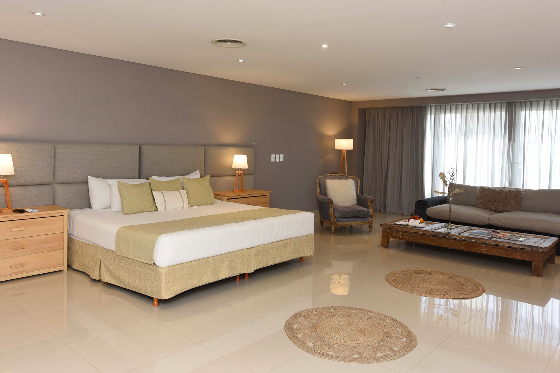 Disfrute de una espaciosa y exclusiva suite de 80 m², decoración minimalista, cama King size y baño con doble bacha y doble ducha. Cuenta además con amplio y relajante living, TV Smart de 55 pulgadas, conexión inalámbrica a Internet, cómodo escritorio de trabajo y cafetera de cortesía.